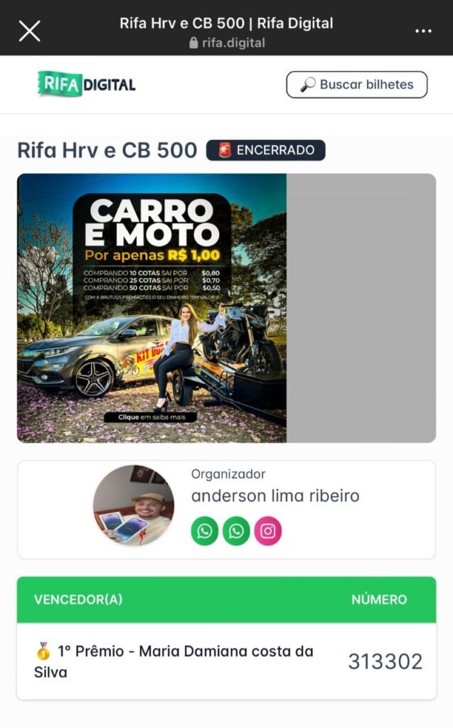 Além das transações financeiras fraudulentas, o casal também promovia sorteios de carros e motos por meio de rifas